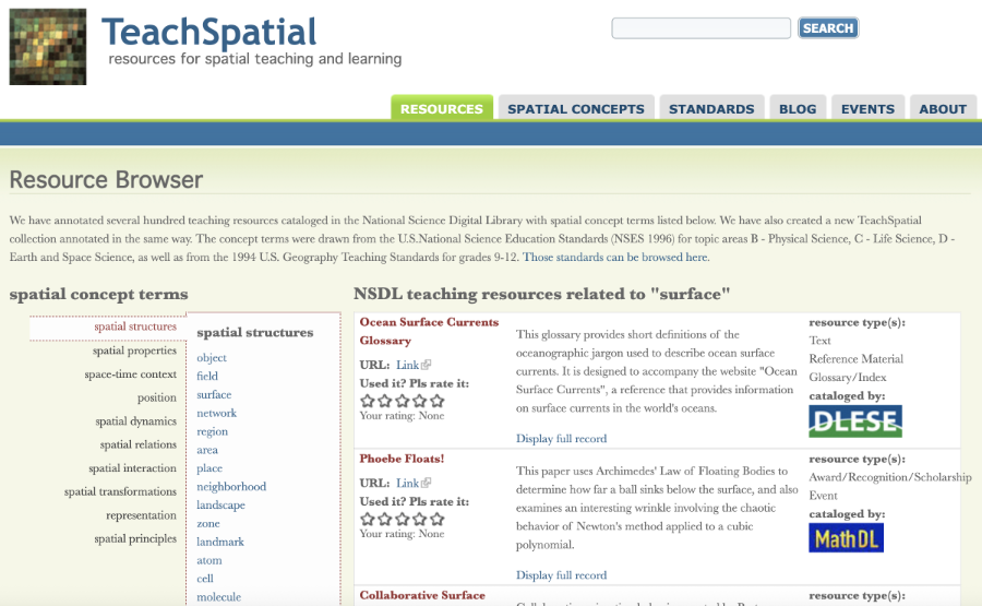Building on this vocabulary, I designed and implemented a harvesting pipeline for the National Science Digital Library (NSDL) learning resource repository. At the time, NSDL exposed a machine-readable metadata infrastructure through the OAI-PMH protocol along with its REST-based NSDL Search API. Using these interfaces, I developed a system that automatically retrieved, classified, and indexed NSDL learning resources associated with any spatial concept identified in our Benchmarks analysis. The system supported both harvesting and contribution of metadata records to the NSDL Metadata Repository, effectively creating an enriched subset of spatial-thinking educational resources and demonstrating the pervasive role of spatial reasoning in existing STEM curricula.