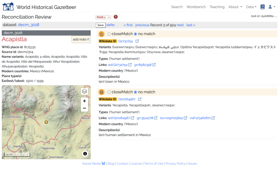 The World Historical Gazetteer (WHG) is a large-scale digital humanities platform for linking, reconciling, and publishing historical place data contributed by researchers across numerous disciplines. Its mission is to build an open, durable index of historical places, capable of capturing the many names, temporal spans, and spatial attestations that places acquire over time, and to make that data accessible for research, teaching, and public communication.